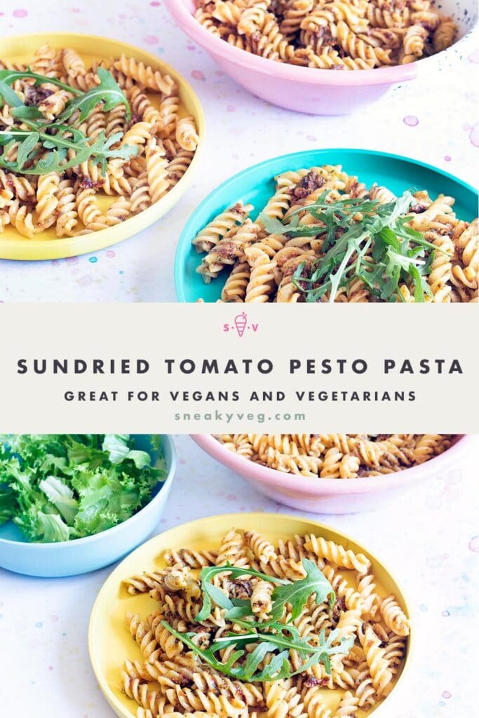 sundried tomato pasta pesto topped with rocket on colourful plates